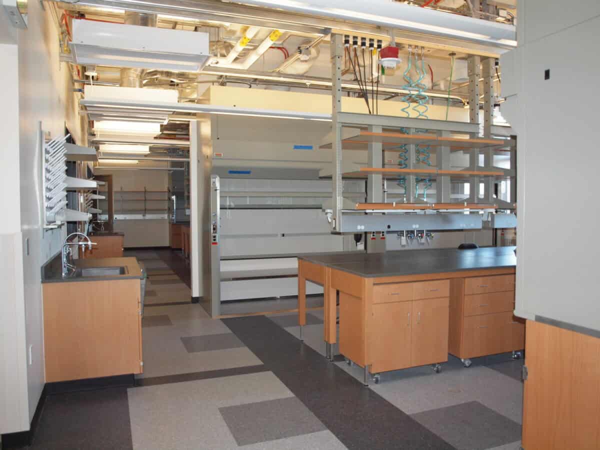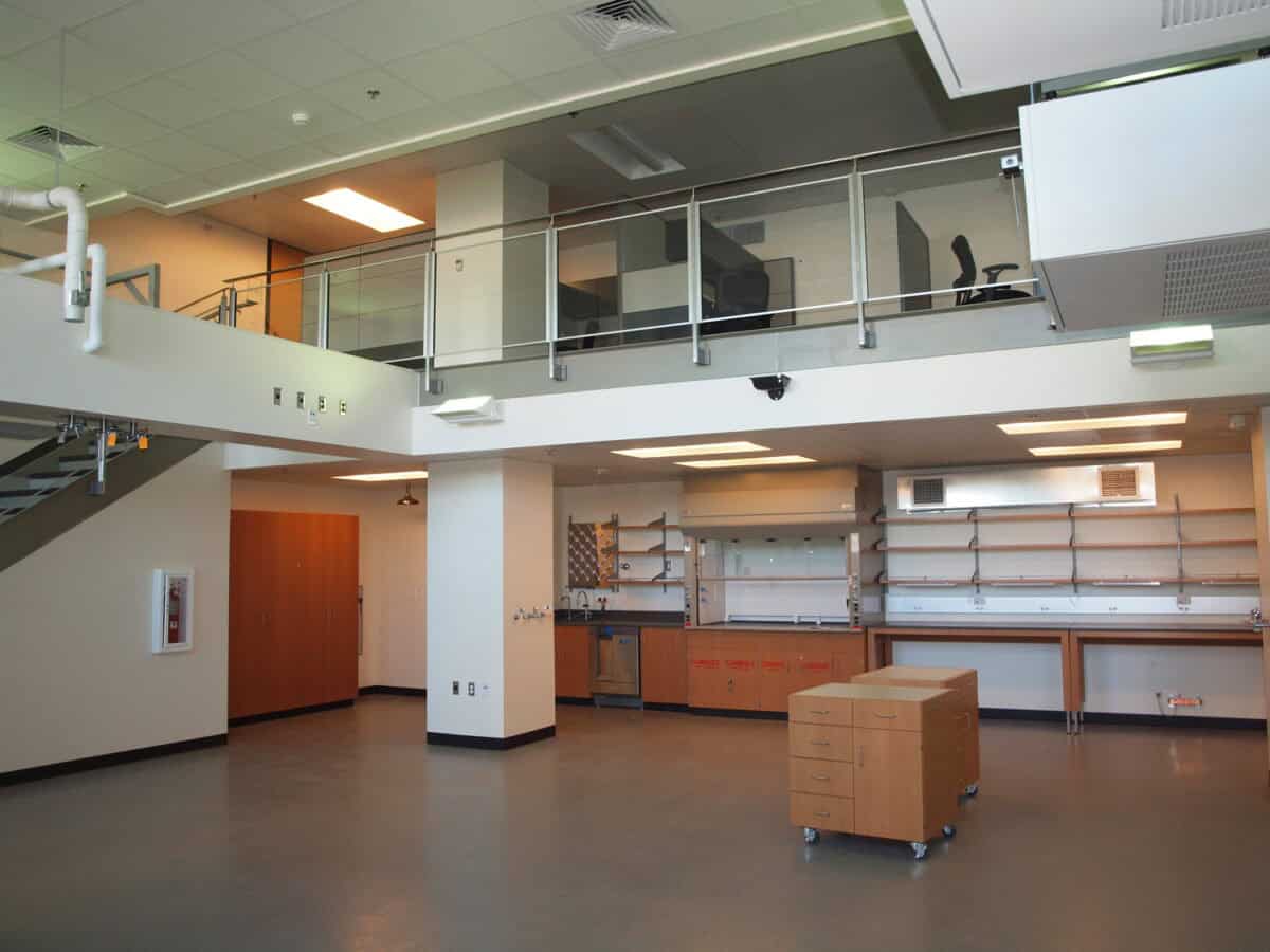 The facility features highly efficient and flexible laboratories with the latest in technology, all built around the concept of interdisciplinary research and collaboration. The building also includes an auditorium, seminar rooms, classrooms, computer rooms, and teaching labs. Other amenities include a gallery, café, and conference rooms organized around an interior main street.