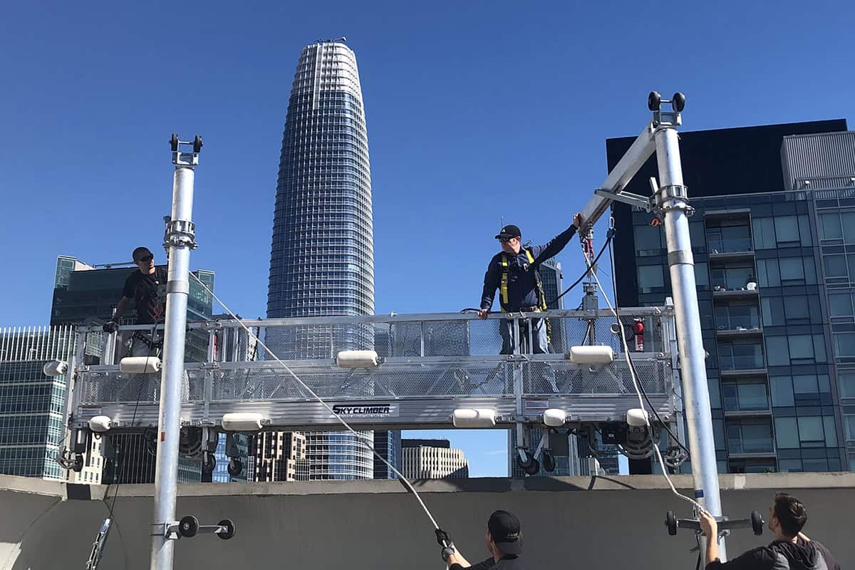 Façade access systems are an essential component of providing a safe and code‑compliant working environment and may include ladders, guardrails, façade access anchors/davits, swing stages, Building Maintenance Units (BMUs), and other systems required for exterior building maintenance (EBM) or routine interior maintenance. While many qualified professionals can design safe and compliant façade access solutions, California’s regulatory framework includes state‑specific requirements. Under Cal/OSHA regulations, only a licensed Scaffold Inspection and Testing (SIT) company is authorized to prepare the Operating Procedures Outline Sheet (OPOS) required for permitting. An OPOS is defined as establishing “safe window cleaning and exterior maintenance procedures for buildings and structures. An OPOS shall include all of the necessary elements in pictorial and written form, to instruct employees in the safe use of roof supported building maintenance equipment or window cleaning procedures not covered by these Orders”.